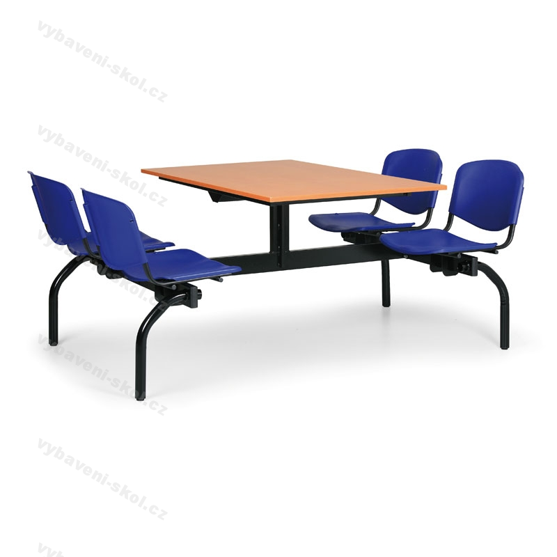 Největší výhodou jídelních setů je velmi snadné udržování pořádku v daném místě. Konstrukce je vyrobena z masivních uzavřených profilů s povrchovou úpravou práškovým lakem. Každá noha je vybavena fixací pro nejlepší vyrovnání stolu. Sedáky a opěráky jsou vyrobeny z odolného plastu. Deska jídelního stolu je vyrobena z laminované dřevotřísky v dekorech buk, třešeň nebo šedá a olepena odolnou ABS hranou o síle 2 mm. Stolová deska má rozměr 1200 x 800 mm.