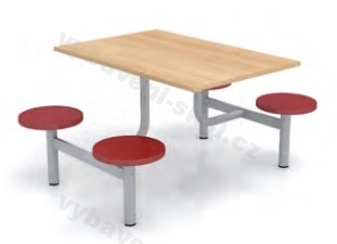 Jídelní sety se vyrábí v pevném provedení. Deska jídelního setu je v provedení LTD, barevné provedení dle vzorníku. Kostra setu se standardně vyrábí ve stříbrné RAL 9006 a je vybavena rektifikačními šrouby, které pomáhají eliminovat nerovnosti podlahy. Sedáky jídelního setu plastové taburety.