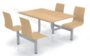 Jídelní sety se vyrábí v pevném provedení. Deska jídelního setu je v provedení LTD, barevné provedení dle vzorníku. Kostra setu se standardně vyrábí ve stříbrné RAL 9006 a je vybavena rektifikačními šrouby, které pomáhají eliminovat nerovnosti podlahy. Sedáky jídelního setu z dřevěných sedáků.