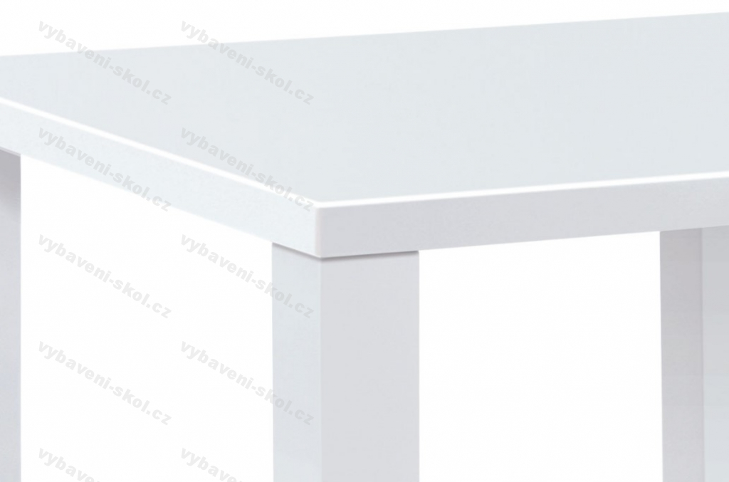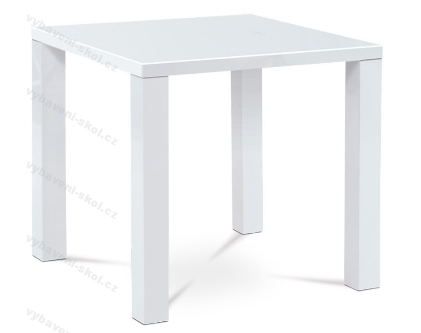 Moderní jídelní stůl v rozměru 80x80 cm. Celý stůl je v bílém lesku.Vrchní deska má tloušťku 4 cm. Tloušťka nohou je 8 x 8 cm.