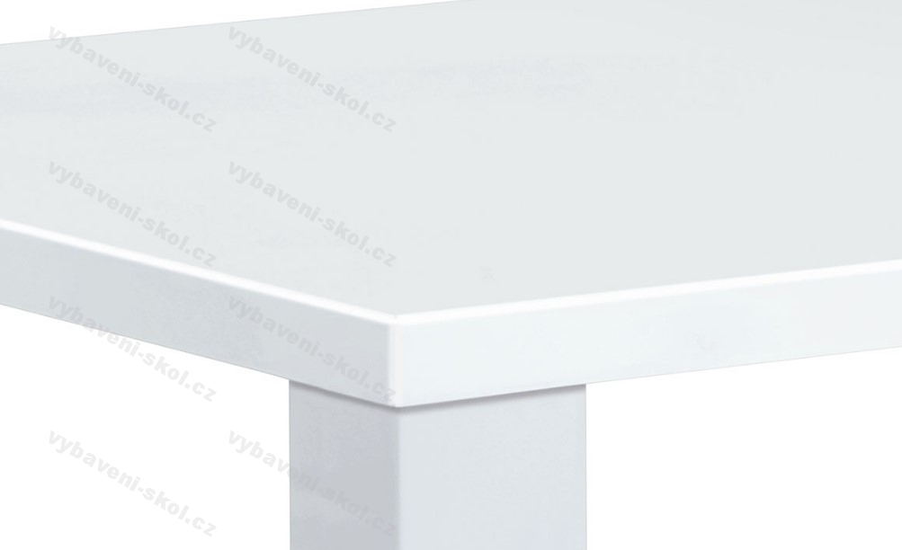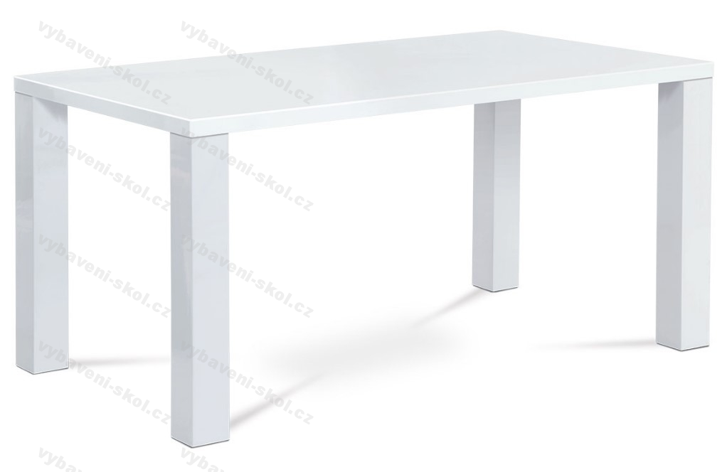 Moderní jídelní stůl v rozměru 80x80 cm. Celý stůl je v bílém lesku.Vrchní deska má tloušťku 4 cm. Tloušťka nohou je 10 x 10 cm.