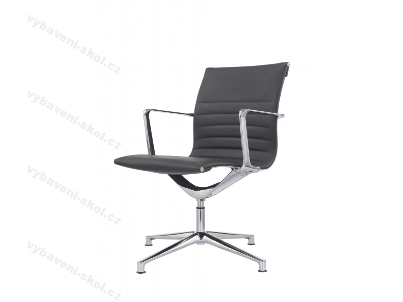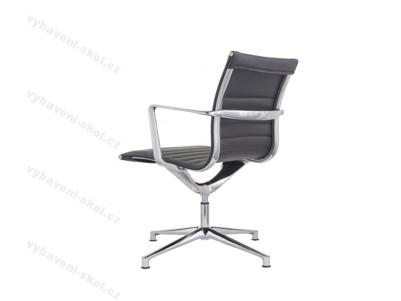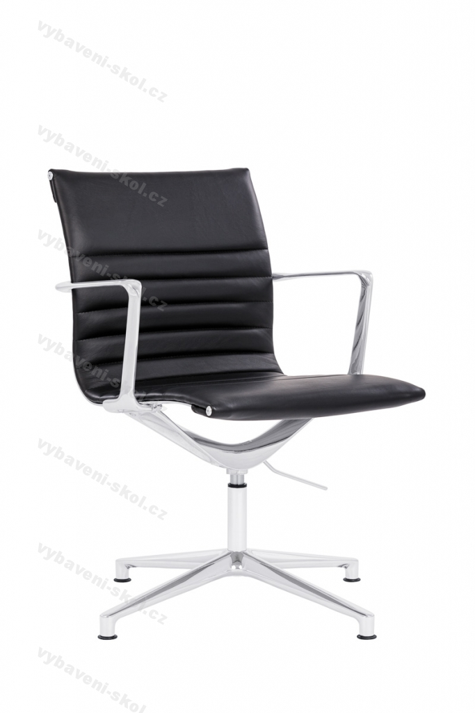 Moderní designová konferenční židle, čalouněná kvalitní kůží. Konstrukce a područky židle jsou z leštěného hliníku. Židle je opatřena čtyřramenným křížem s kluzáky s otočným chromovaným čepem. Nosnost židle 130 kg.