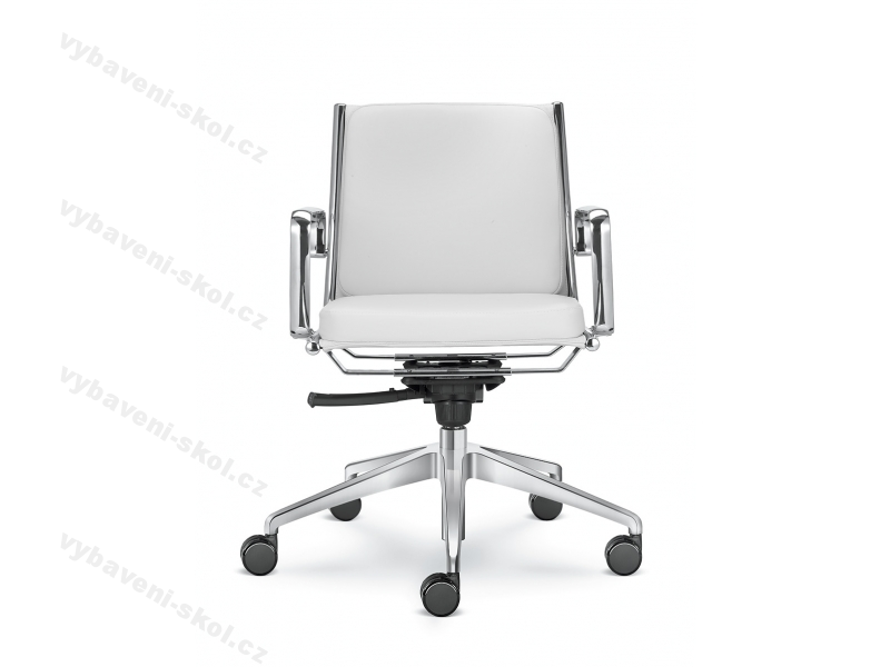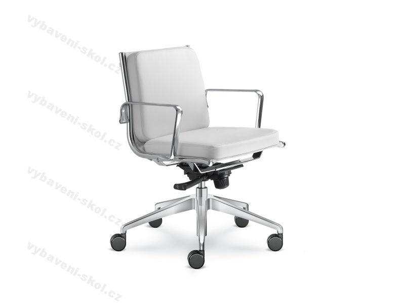 Designově laděná kancelářská židle Fly 701 nalezne uplatnění v kancelářích i domácích pracovnách. Disponuje houpací mechanikou. Umožňuje nastavit úhel sklonu opěradla a jeho výšku, výšku sezení. Korpus pracovní židle tvoří čalouněná studená pěna a nízký opěrák. Čalounění je polštářové a lze vybírat z nabídky níže. Otočné křeslo je vybavené stabilním pětiramenným leštěným hliníkovým křížem, s kolečky a područkami. K doplnění kožený návlek na područky a chromová kolečka s pryží na tvrdou podlahu.