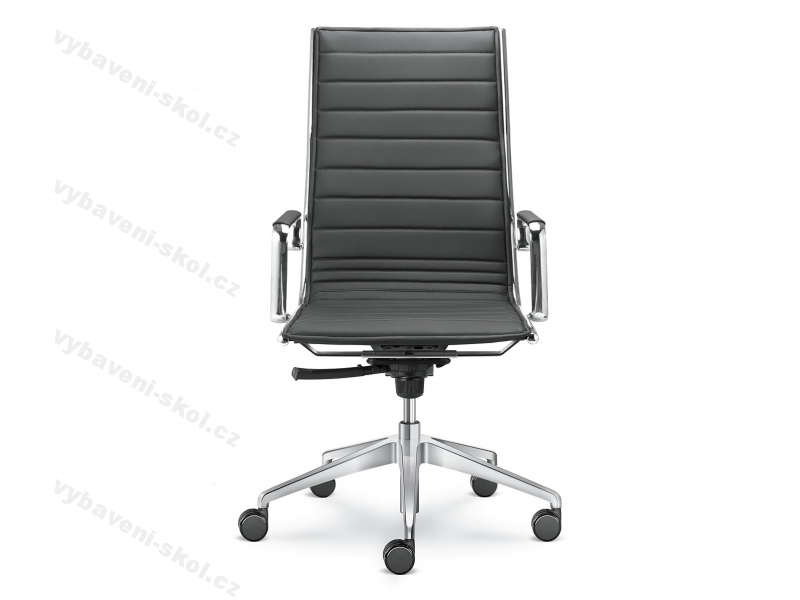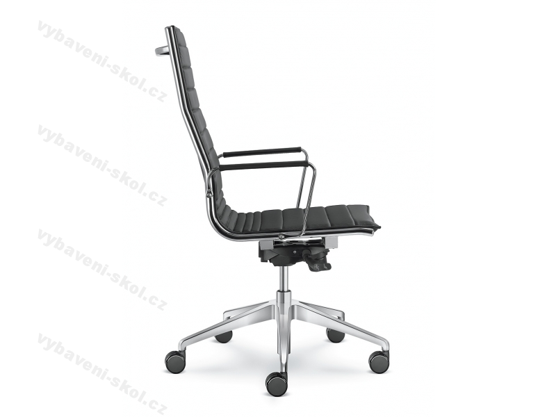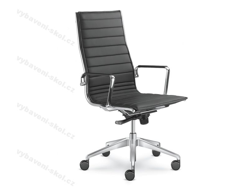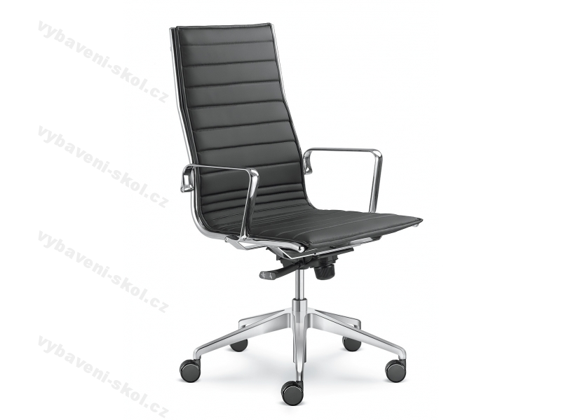 Kancelářská židle Fly 710 je vyrobená z kvalitních materiálů ve velmi moderním designu. Disponuje křeslovou houpací mechanikou. Umožňuje nastavit úhel sklonu opěradla a jeho výšku, výšku sezení. Korpus pracovní židle tvoří čalouněná studená pěna a vysoký opěrák. Zadní část opěráku s madlem. Čalounění s prošitím do pruhů lze vybírat z nabídky níže. Otočné křeslo je vybavené stabilním pětiramenným leštěným hliníkovým křížem, s kolečky a područkami. K doplnění kožený návlek na područky a chromová kolečka s pryží na tvrdou podlahu.