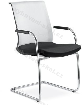 Kancelářská židle konferenční, opěrák čalouněný samonosnou síťovinou, plastové části černé, kostra ocelová pérová v barvě N1 černá, N2 šedá nebo N4 chrom.