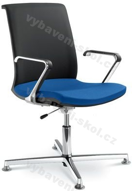 Kancelářská židle výrobce LD seating typ LYRA NET 204-F34-N6, kancelářská konferenční otočná židle, opěrák čalouněný, plastové části černé, výškově stavitelná, leštěný 4-ramenný hliníkový kříž, kluzáky.