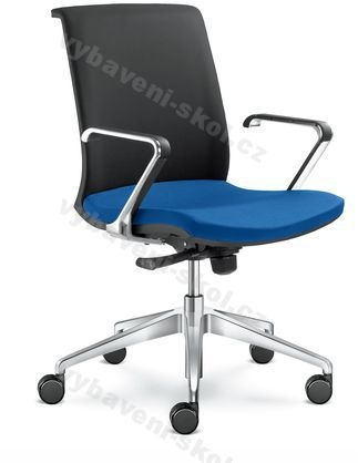 Kancelářská otočná židle LYRA NET. Pro tuto řadu jsou charakteristické štíhlé linie a po stránce funkce, nabízí modely židlí se synchronní mechanikou, všechny parametry a nastavení potřebné pro výbornou ergonomii sezení. Kancelářská otočná židle, opěrák čalouněný, plastové části černé, houpací mechanismus, leštěný hliníkový kříž, kolečka.