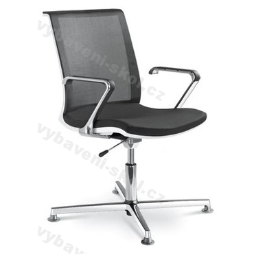 Kancelářská židle výrobce LD seating typ LYRA NET 213-F34-N6, kancelářská konferenční otočná židle, opěrák čalouněný samonosnou síťovinou dle výběru, plastové části bílé, výškově stavitelná, leštěný 4-ramenný hliníkový kříž, kluzáky.