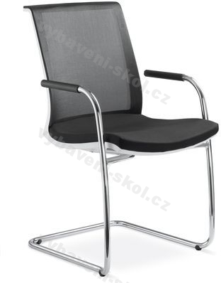 Kancelářská židle konferenční, opěrák čalouněný samonosnou síťovinou dle výběru, plastové části bílé, kostra ocelová pérová v barvě N1 černá, N2 šedá nebo N4 chrom.