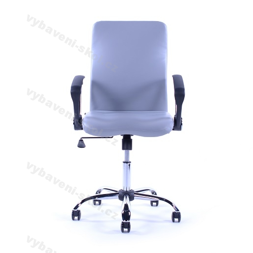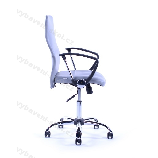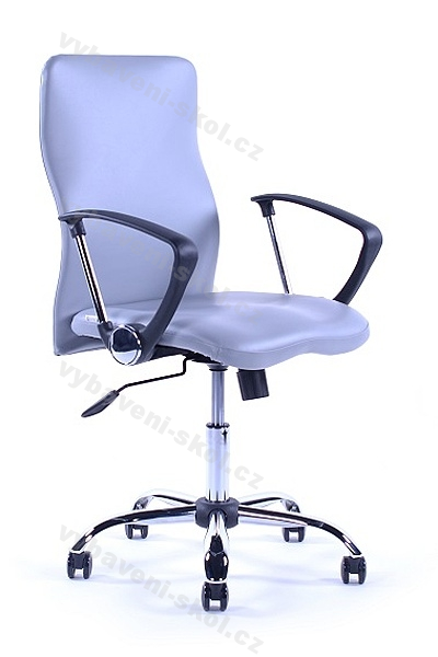 Pevná otočná židle s tvarovaným opěrákem a ergonomicky tvarovaným sedákem. Prověřená a bezproblémová židle. Tvarovaný opěrák, pevné područky, houpací mechanismus s blokací v základní poloze, chromový kříž, univerzální kolečka Ø 60mm, čalounění Mecamed nebo Pacific - barvy dle aktuálních vzorníků, dodání v demontu v kartonu 61x59x29 cm.