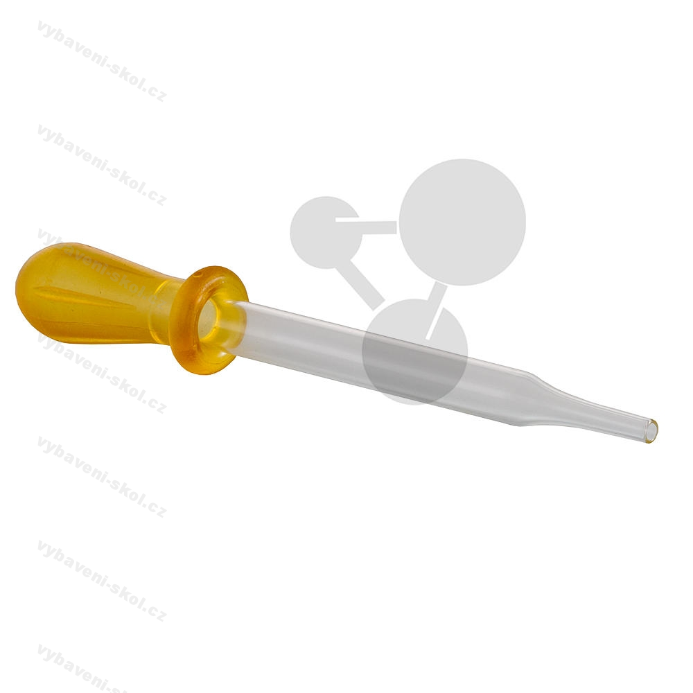 Malé skleněné pipety o délce 80 mm, s kaučukovou savičkou.