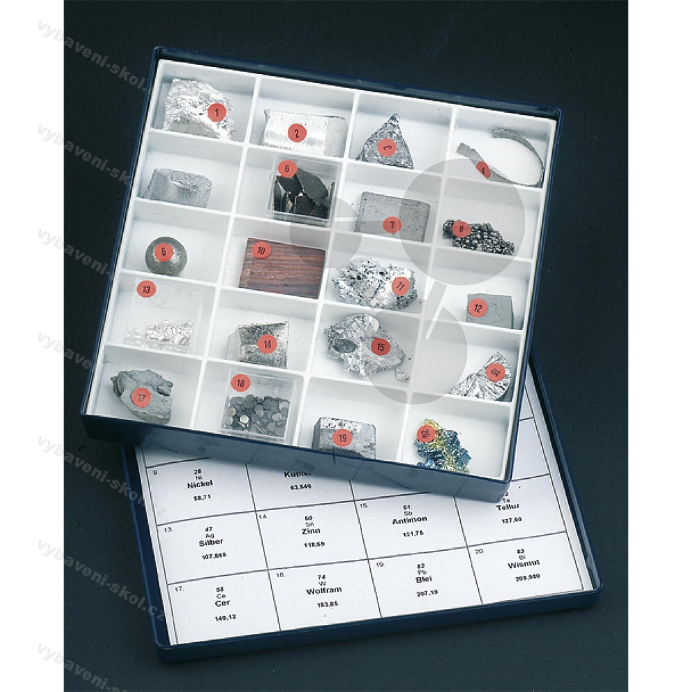 Tato kolekce obsahuje 20 různých kovů, které se vyskytují jako průmyslově získané chemické prvky.