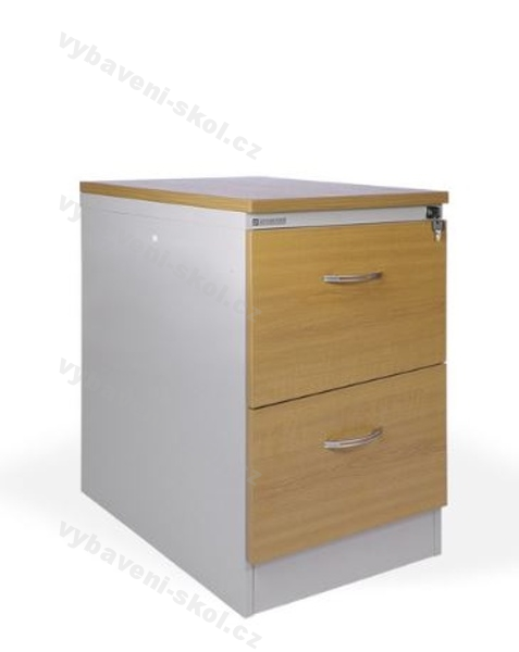 Kartotéka s centrálním uzamykáním všech zásuvek je vhodná do kanceláří, školských a zdravotnických zařízení, archivů atd. Je vyrobena z kvalitní oceli, povrch je upraven vypalovaným lakem v šedé barvě, čela zásuvek a horní deska jsou z lamina. 100 % výsuvné zásuvky s nosností 40 kg jsou umístěny na přesné teleskopické vedení s kuličkovými ložisky, což umožňuje snadnou a nehlučnou manipulaci. Kartotéka má zásuvky opatřeny zábranami proti vypadnutí a převážení (nelze otevřít více zásuvek najednou).