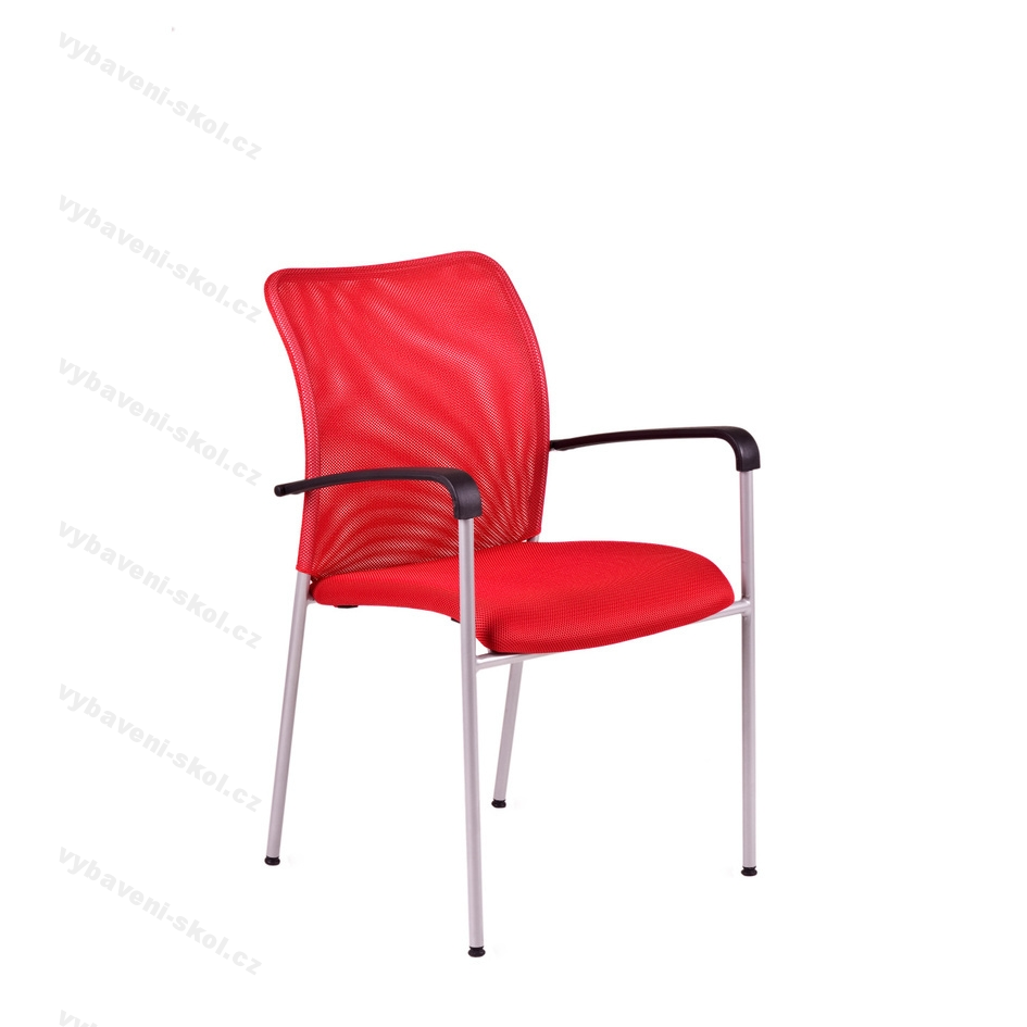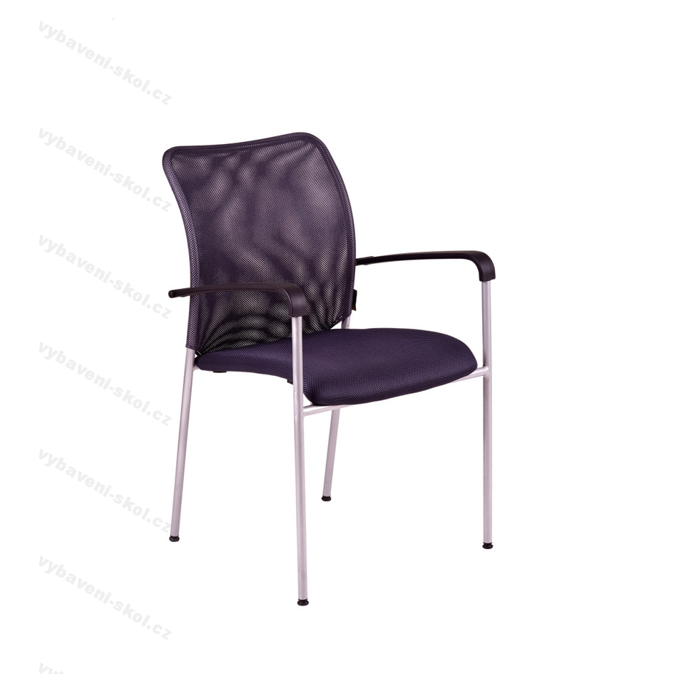 Stohovatelná jednací židle Triton Grey s moderním designem, opěrák čalouněný samonosnou síťovinou, sedák čalouněný látkou, šedá svařovaná kovová konstrukce v hliníkové barvě. Židle je vertikálně stohovatelná.
