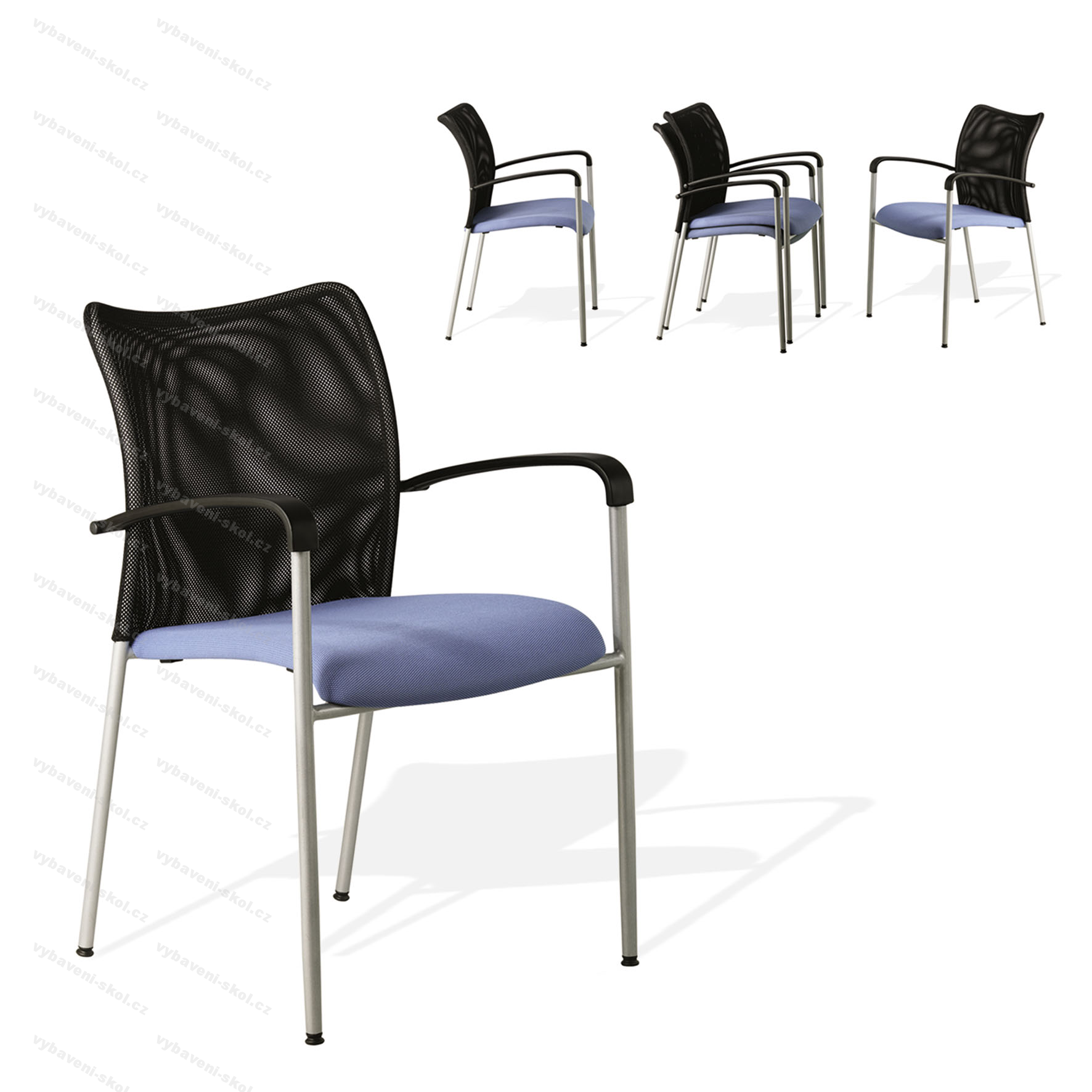 Stohovatelná jednací židle Triton Net s moderním designem, opěrák čalouněný samonosnou černou síťovinou, sedák čalouněný barvou látky dle výběru, svařovaná kovová konstrukce v šedé barvě. Židle je vertikálně stohovatelná.