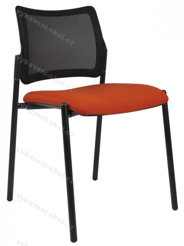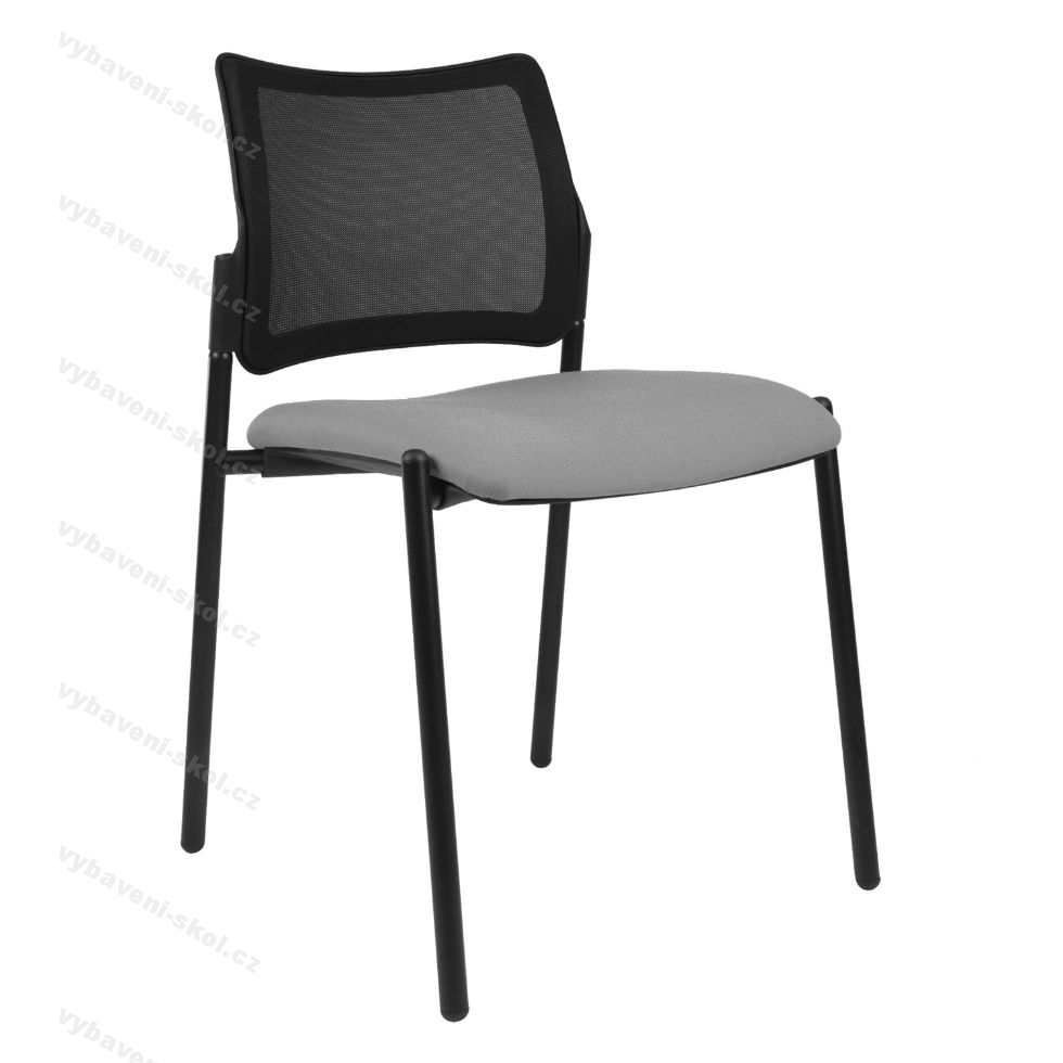 Moderní jednací židle, síťovaný černý opěrák, čalouněný sedák dle nabídky, ocelový rám chromovaný, lakovaný černě nebo šedě, stohovatelnost 5 kusů, nosnost 120 kg, záruka 36 měsíců.