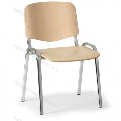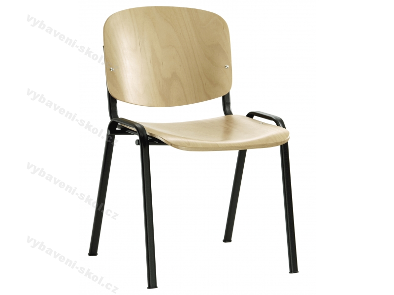 Praktická, klasická, konferenční židle Iso v jednoduchém designu. Široký dřevěný sedák a opěrák, stabilní černá, šedá nebo chromovaná, svařovaná konstrukce. Jednací židle lze jednoduše spojovat pomocí spojek do řad a vytvořit pohodlné vícemístné sezení. Pod sedák je možné instalovat praktický úložný košík (drátěný). Stohovatelnost 8 ks židlí.