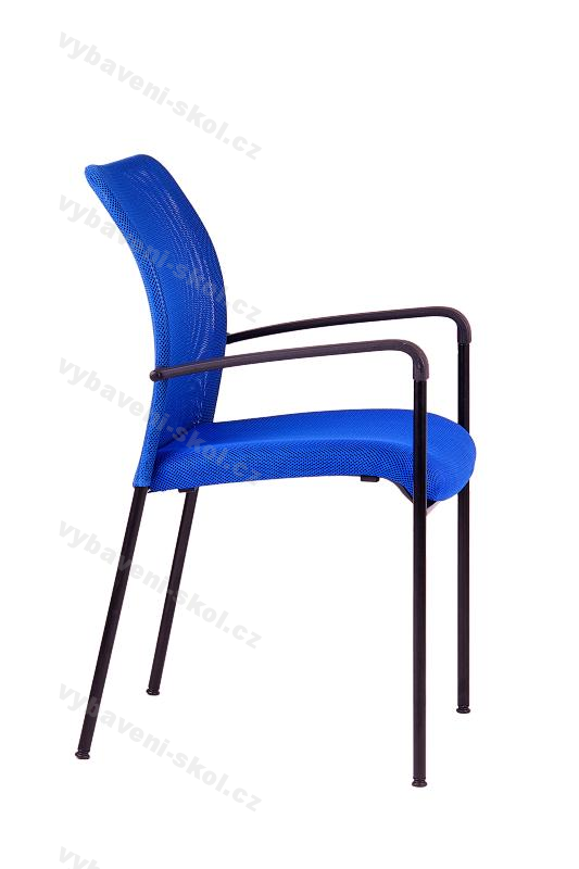 Stohovatelná jednací židle Triton Black s moderním designem, opěrák čalouněný samonosnou síťovinou, sedák čalouněný látkou, svařovaná kovová konstrukce v černé barvě. Židle je vertikálně stohovatelná.