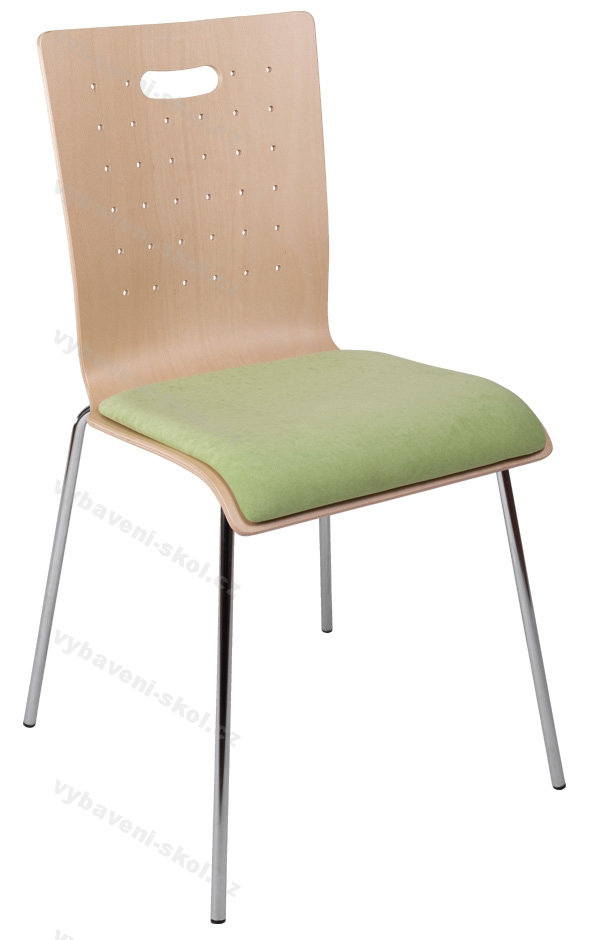 Dřevěná konferenční židle se stabilní svařovanou konstrukcí v povrchové úpravě chrom nebo RAL 9006, skořepina z tvarované překližky možnost výběru odstínu dřeva, nebo s čalouněným sedákem v mnoha látkových dezénech.