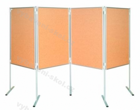 Paraván je vhodným interiérovým doplňkem. Používá se jako dělící stěna, informační nástěnka, kancelářská pomůcka, oboustranná tabule, orientační cedule, výstavní expozice, atd. Vnitřní, oboustrannou výplň paravanu tvoří kvalitní, přírodní, drcený korek, který umožňuje snadné vpichování celé délky špendlíků. Korková deska je vložená do pevného rámu sendvičové konstrukce, vnitřní výplň je rovná, neprohýbá se. Barva rámu k výběru níže. Rohy rámu jsou zaoblené, vyrobené z odolného plastu. Součástí balení jsou plastové spojky (4 kusy), které slouží k zavěšení tabulí mezi nohy a umožňují vytvořit sestavy podle potřeb. V nabídce několik druhů nohou, volitelná barva. Rozměry 90x120 cm (Š x V).