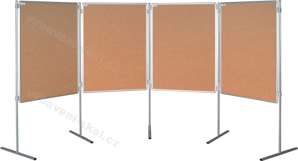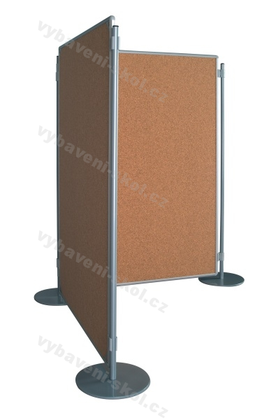 Praktický nábytkový prvek s širokými možnostmi použití. Paravan může být k umístěný v různých prostorách a využitelný jako dělící stěna, informační nástěnka, kancelářská pomůcka, oboustranná tabule, orientační cedule, výstavní expozice, atd. Vnitřní, oboustrannou výplň paravanu tvoří kvalitní, přírodní, drcený korek, který umožňuje snadné vpichování celé délky špendlíků. Korková tabule je vložená do pevného rámu sendvičové konstrukce, vnitřní výplň je rovná, neprohýbá se. Barva rámu k výběru níže. Rohy rámu jsou zaoblené, vyrobené z odolného plastu. Součástí balení jsou plastové spojky (4 kusy), které slouží k zavěšení tabulí mezi nohy a umožňují vytvořit sestavy podle potřeb. V nabídce několik druhů nohou. Volitelná barva konstrukce paravanu. Rozměry 75x100 cm (Š x V). Cena za 1 tabuli bez nohou.