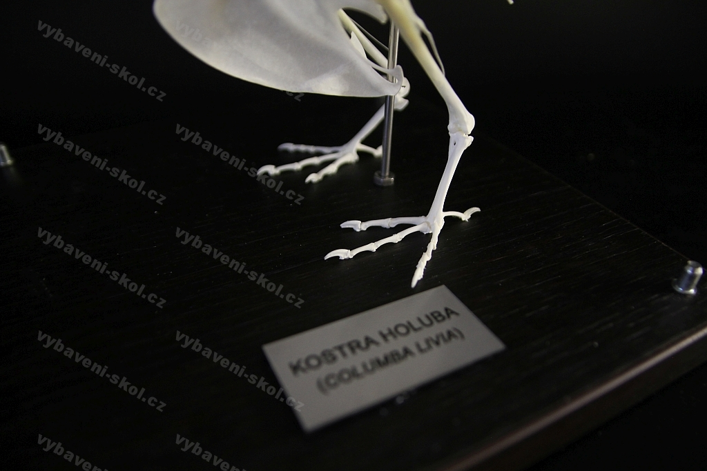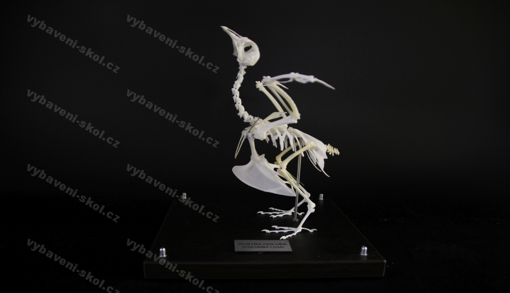 Kostěný preparát na dřevěném podstavci se skleněným krytem a popiskem. Jedná se o seskládané reálné kosti zvířete spojené drátky a lepidlem. Materiál je získáván jako úhyny z veterinárních ordinací nebo z chovů a je zpracováván dle pravidel veterinárního zákona a hygieny v dílně s registrací státní veterinární správy. Obsahuje všechny kosti zvířete kromě hrudní kosti a chrupavek. Kosti jsou důkladně odmaštěny, očištěny a vyběleny. Preparát tedy neobsahuje žádné zbytky tkání a všechny kosti a kloubní spojení jsou jasně zřetelné. Jedná se o precizní zpracovaní v dynamickém postavení. Z hlediska kvality, ceny, časové dostupnosti a servisu se jedná o nejlepší produkt na trhu. Anatomická pomůcka je vhodná pro základní, střední a vysoké školy, ale také pro veterinární ordinace.