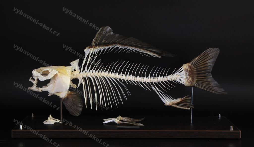 Kostěný preparát na dřevěném podstavci se skleněným krytem a popiskem. Jedná se o seskládané reálné kosti zvířete spojené drátky a lepidlem. Materiál je získáván jako úhyny z veterinárních ordinací nebo z chovů a je zpracováván dle pravidel veterinárního zákona a hygieny v dílně s registrací státní veterinární správy. Kosti jsou důkladně odmaštěny, očištěny a vyběleny. Preparát tedy neobsahuje žádné zbytky tkání a všechny kosti a kloubní spojení jsou jasně zřetelné. Jedná se o precizní zpracovaní v dynamickém postavení. Z hlediska kvality, ceny, časové dostupnosti a servisu se jedná o nejlepší produkt na trhu. Anatomická pomůcka je vhodná pro základní, střední a vysoké školy, ale také pro veterinární ordinace.