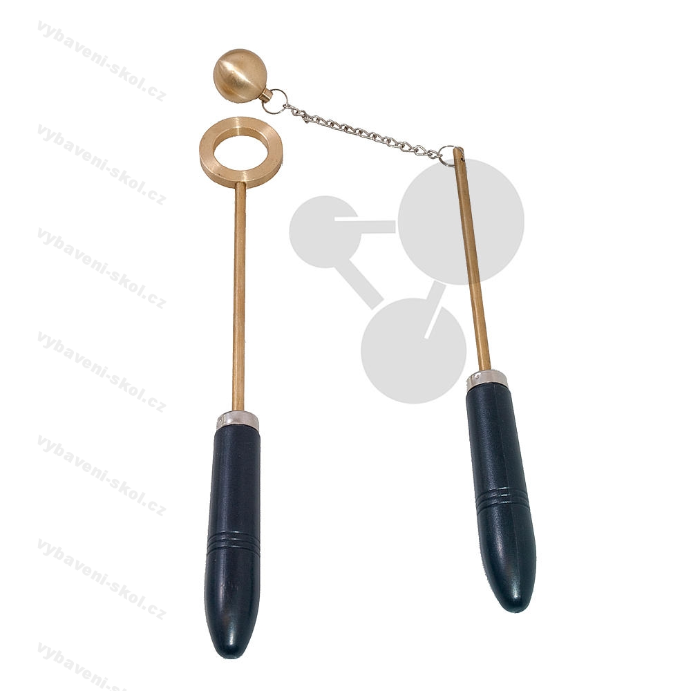 Koule a prstenec, pro názornou ukázku tepelné dilatace. S tepelně izolujícími rukojeťmi pro bezpečné provedení pokusu.