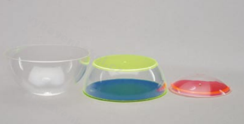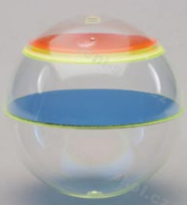 Koule rozložitelná na polokouli, kulovou vrstvu a kulový vrchlík. Barevně rozlišeny řezné plochy. Průměr koule 12 cm.