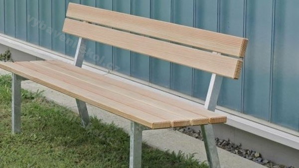 Konstrukce z ocelového jäkl. profilu 40x30 mm v kombinaci s kvalitními smrkovými latěmi. Dřevo o rozměru 1500x90x30mm. Šířka:1500mm. Hmotnost:24 Kg. Výška sedací plochy:440mm.