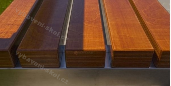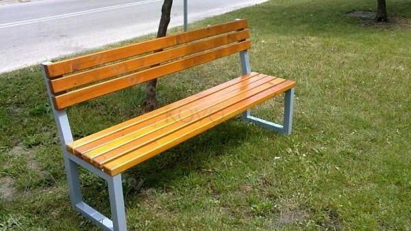 Konstrukce z ocelového jäkl. profilu 60x60mm v kombinaci s kvalitními smrkovými latěmi o rozměru 1500x70x40mm. Šířka: 1500mm. Hmotnost:43 Kg. Výška sedací plochy: 440mm.