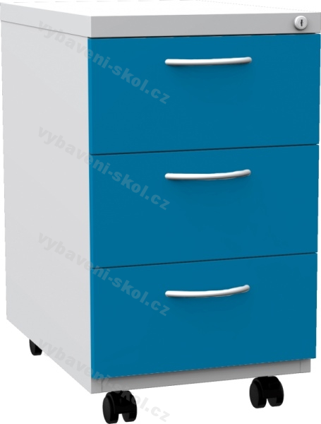 Kovový kontejner s centrálním zámkem je vhodný do všech typů pracovišť. Jeho výška umožňuje umístění přímo pod kancelářský stůl, kolečka přispívají k jeho mobilitě. Kontejner je celokovový, povrch má upraven práškovým lakem s RAL 7035. Zásuvky s možností výběru barvy RAL jsou plnovýsuvné, umístěny na teleskopickém vedení s kuličkovými ložisky. Příčka formátu A4 přehledně dělí prostor a slouží k podélnému umístění závěsných desek v zásuvce. Zásuvky jsou zajištěny cylindrickým zámkem s dvěma klíči.