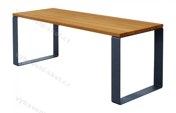 Kovová konstrukce stolu z taženého profilu 80x30 mm s kombinací smrkových latí. VxDxH 740x1500x600 mm. Hmotnost: 57 kg. Rozměr prken: 1500x90x40 mm.
