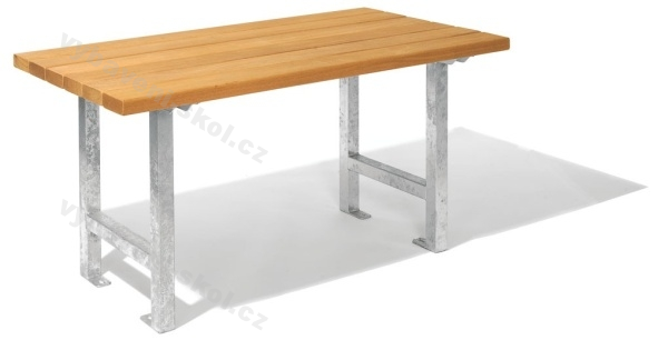 Kovová konstrukce stolu z jeklu 50x50 mm s kombinací smrkových latí. VxDxH 760x1500x620 mm. Hmotnost: 35 kg. Dřevěné latě:1500x90x35 mm.