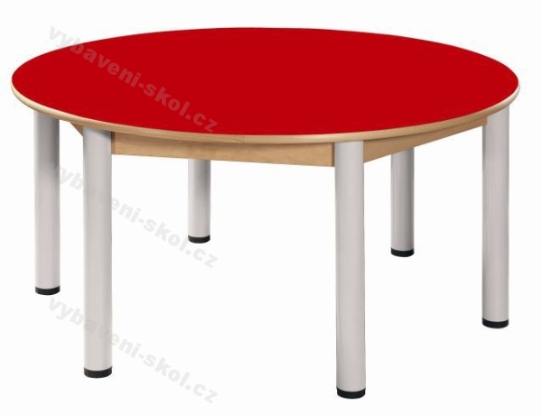 Stůl kulatý, výškově stavitelné nohy. Rozměr: 120x52 - 70 cm (Průměr x V).
