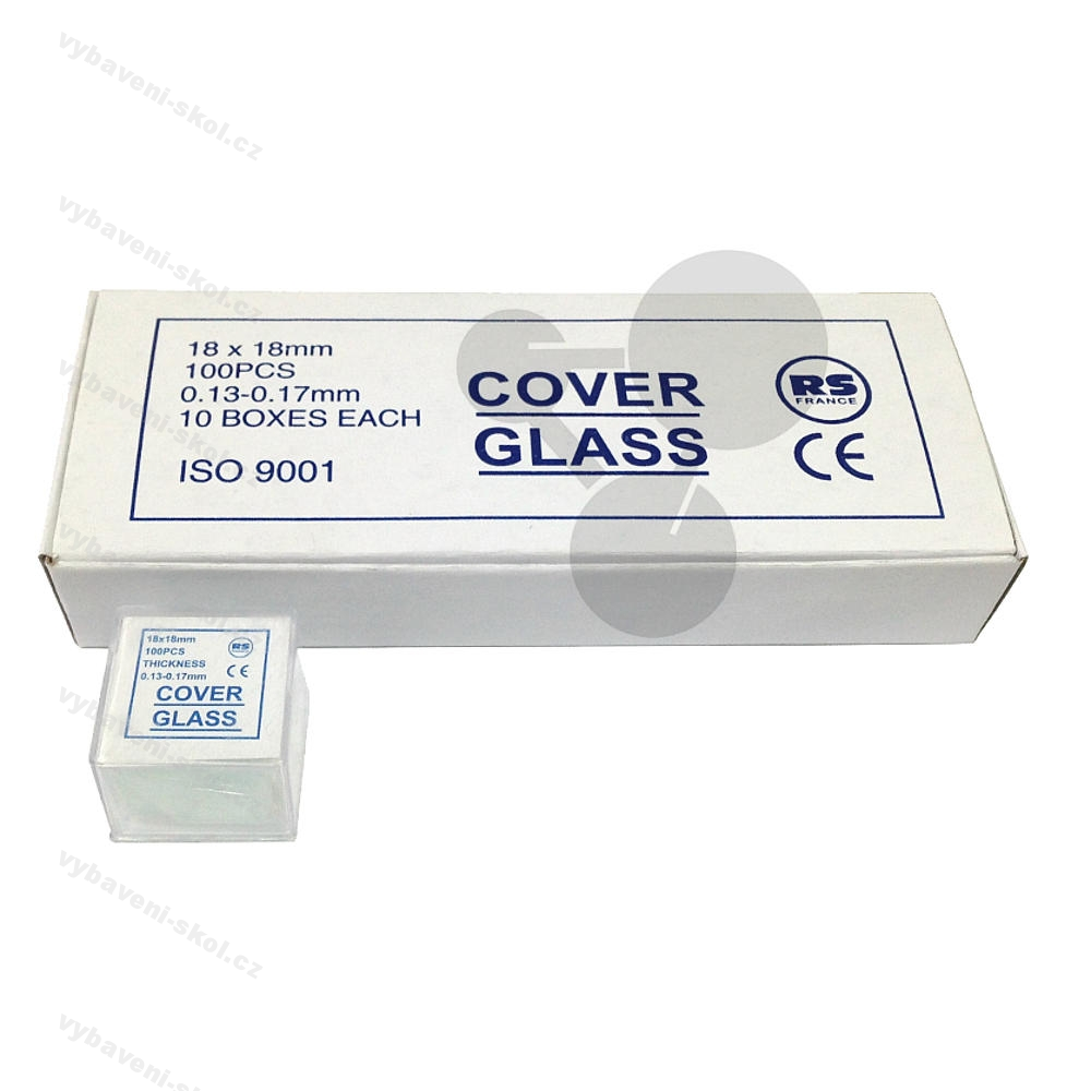 100 krycích sklíček o rozměrech 20 x 20 mm.