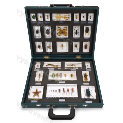 Sada 27 přírodních vzorků (preparátů) bezobratlých živočichů. Každý vzorek zalitý do akrylové pryskyřice. Umožňující pohodlné pozorování vzorků ze všech stran.