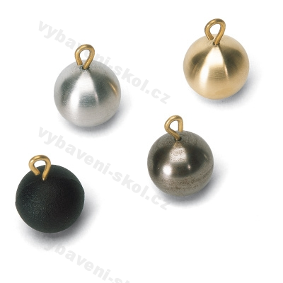 Sada 4 kuliček z mosazi, hliníku, oceli a plastu. K sestavení matematického kyvadla. Průměr kuliček 25 mm. Hmotnosti 71,2 g, 25,2 g, 61 g, 10,5 g.