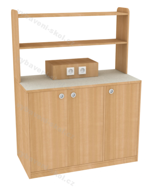 Funkční moderní vybavení pro přírodovědné výukové učebny a laboratoře slouží pro praktická cvičení studentů. Stabilní laboratorní stůl se skládá ze středně vysoké skříně s úložným prostorem, pracovní plochy odolné proti oděrům a celodřevěné nástavby. Součástí pracovní desky (několik typů) je instalovaný systém s přípravou pro rozvody elektrického napětí, vody, plynu. Desku lze doplnit o výlevky s odolnou odtokovou trubkou. Korpus skříně tvoří kvalitní laminovaná dřevotřísková deska (síla 18 mm) v různých dezénech, nejvíce namáhané hrany jsou chráněné odolným ABS systémem (tl. 2 mm). Dvířka a zásuvky jsou opatřené kruhovými kovovými úchyty (v nabídce další druhy), možnost uzamykání. Kovové části a doplňky mají povrch ošetřený práškovou vypalovanou barvou. Pracovní stůl je umístěný na 5 cm vysokém soklu. Stůl nabízíme v jednostranném nebo oboustranném provedení. Rozměry 90x120x60 (VxŠxH).