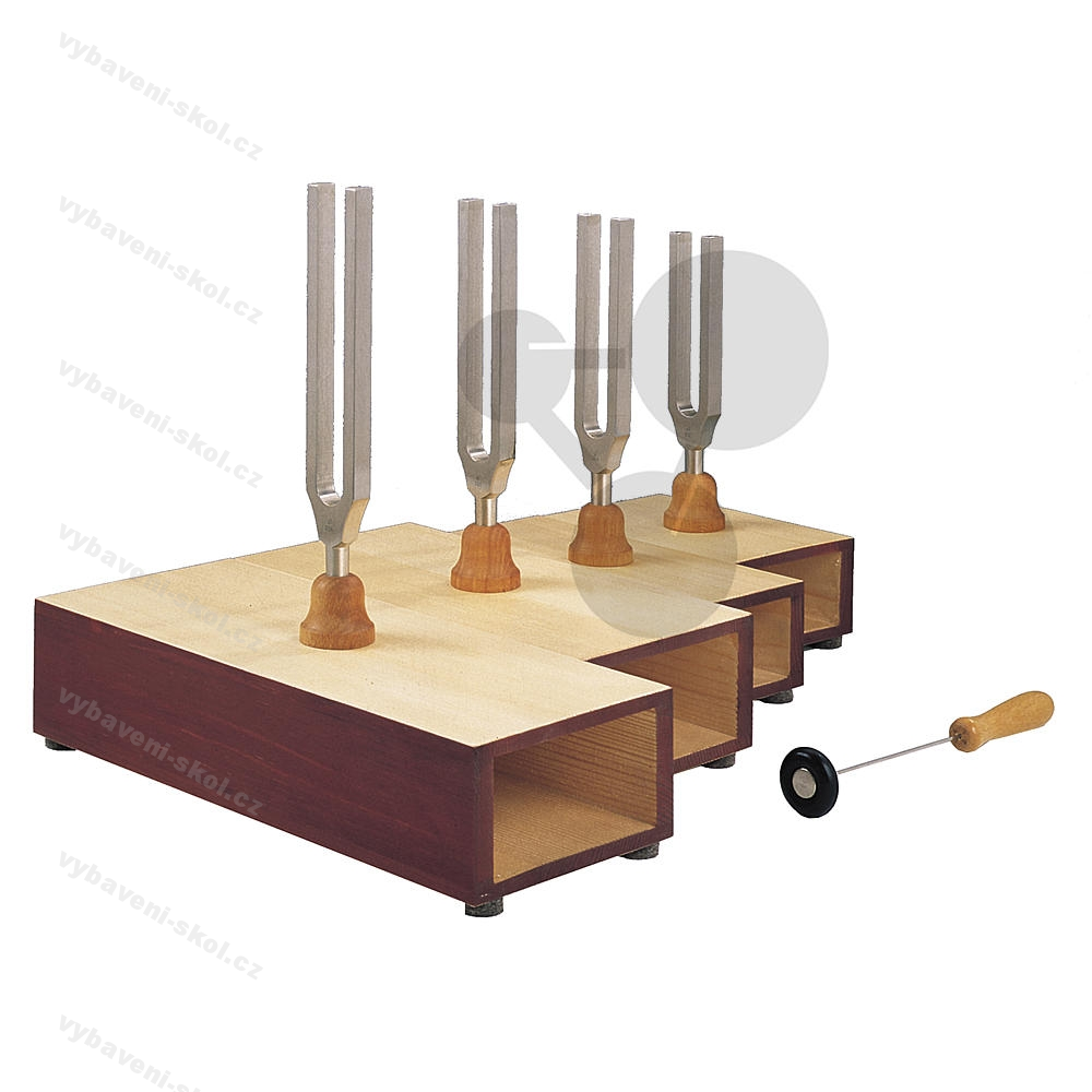 4 ladičky na rezonanční skříňce s kladívkem.