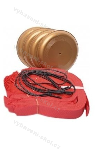 Složení: tkaný PP polypropylénový popruh, červené barvy, rohy lajn jsou sešity a opatřeny nýtem pro navlečení gumových smyček, gumové smyčky - slouží ke spojení s kotvícího prvku a dopnutí lajny, - kovový kolík nebo plastový terč slouží k ukotvení lajn k podkladu hřiště (pod pískem). Lajny jsou v barvě červené a jsou vybaveny ukotvením disky.