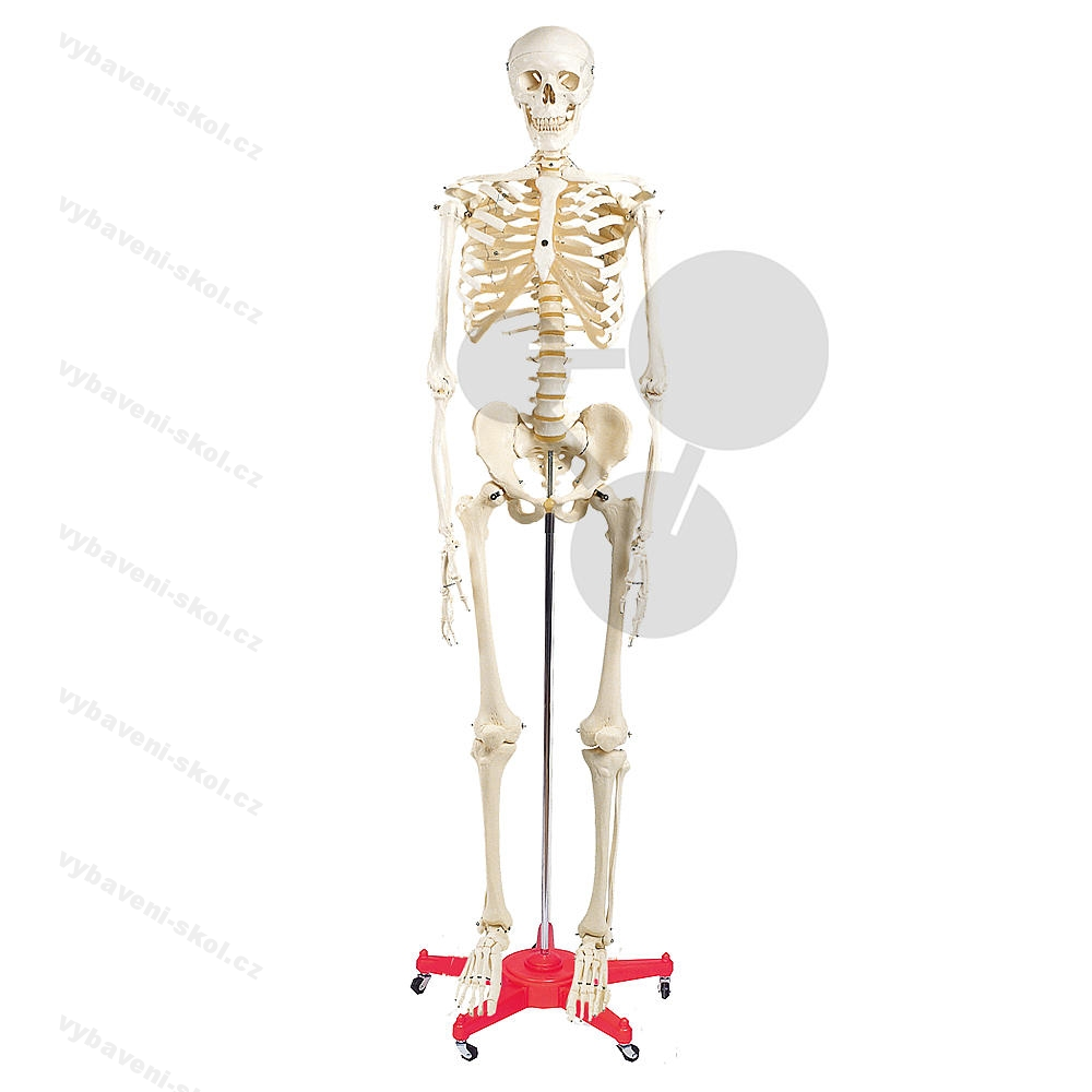 V kvalitě LabGear. Lidská kostra z nerozbitného plastu. Naturální odlitek prvotřídní mužské kostry se znázorněním trhlin, dutin a anatomických detailů. Lebka se dá rozložit na lebeční klenbu, lebeční spodinu a dolní čelist. Postavení zubů odpovídá chrupu dospělého člověka. Lebku, nohy a ruce lze odejmout. Výška 168 cm. Součástí balíčku je i protiprachový ochranný obal. Pro 2. stupeň ZŠ.