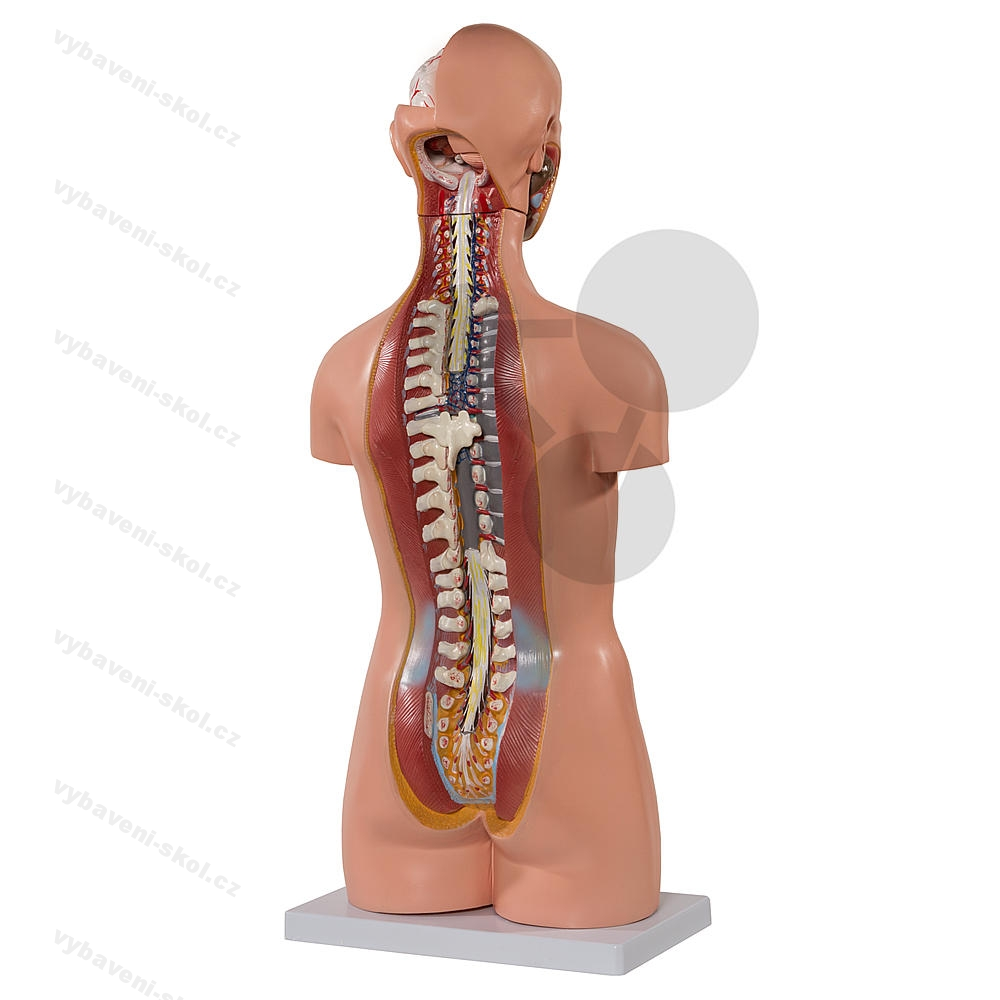 Pouze u trupu v klasickém provedení jsou záda odkrytá od malého mozečku až ke kostrči. Ploténky, obratle, mícha, spinální nervy a vertebrální artérie jsou zde viditelné!
