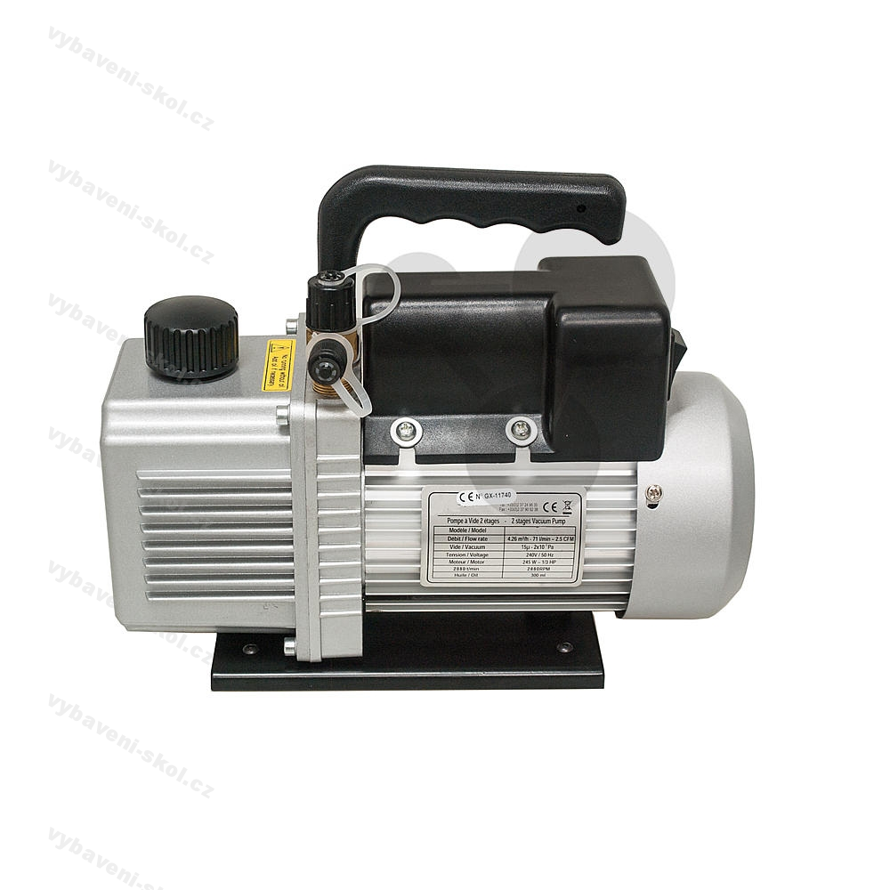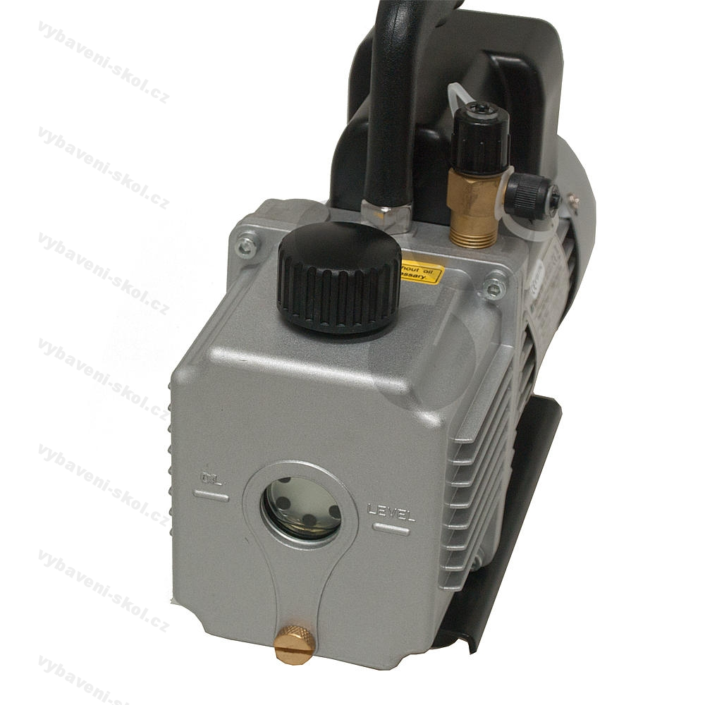 Dvoustupňová lopatková vakuová vývěva. Stav oleje lze snadno zkontrolovat průhledítkem.