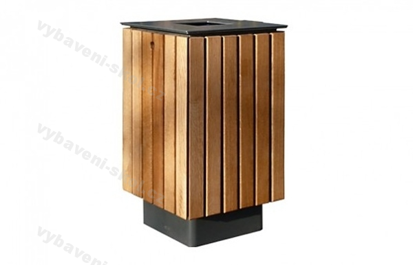 Kostra koše je obložena z přední a zadní části velmi kvalitním dřevem. Zjemňující dřevěné lamely, technicistně čistý drážkovaný plech či zajímavě průhledný tahokov přinášejí vždy jiný, avšak elegantní efekt. Účelnost a vysoká odolnost proti vandalismu a korozi jsou samozřejmostí. Nosná ocelová kostra ošetřena práškovou barvou RAL dle výběru nese opláštění z masivního dřeva, které je povrchově upravené třikrát natřenou lazurou ve volitelném dezénu. Vložená nádoba z pozinkovaného plechu. Kotvení koše do betonové patky či na dlažbu nebo betonováním.