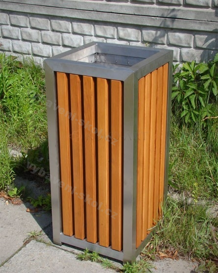 Elegantní kovový koš z jeklu 35x35mm s dřevěným obložením, vybavený vyjímatelnou pozinkovanou vložkou.