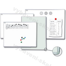 Magnetická tabule disponuje keramickým povrchem pro popis fixem (za sucha stíratelné) a použití magnetů. Povrch tabule bílý. Tabule je upevněná do rámu z eloxovaného hliníku. Součástí dodávky je odkládací lišta a montážní sada.