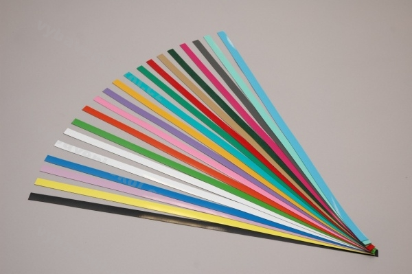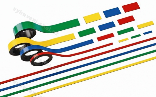Barevné lepící pásky jsou speciálně vyrobené pro magnetické, rozvrhové a plánovací tabule, flipcharty. Jsou vybavené magnetickým, dobře přilnavým povrchem. Horní strana jednoduše popisovatelná fixem, snadno čistitelná. Pásek o rozměru 60x1,5 cm. V balení 20 kusů magnetických pásků různých barev, tzv. 1. sada. K zakoupení 2. sada magnetických pásků v jiných barevných odstínech. Na základě požadavku je možné zhotovit tenké lepící pásky v dalších barvách a rozměrech.