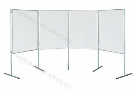 Paraván je navržený s důrazem na vysokou odolnost a dlouhou životnost. Nalezne uplatnění jako dělící stěna, informační nástěnka, kancelářská pomůcka, oboustranná výuková tabule, orientační cedule, výstavní expozice, atd. Vnitřní výplň paravánu tvoří kvalitní, dvouvrstvákeramická deska (několik barev), vhodná pro každodenní použití. Povrch je určený pro popis fixem nebo používání magnetů. Magnetický panel je vložený do pevného rámu, barva k výběru níže. Rohy rámu jsou zaoblené, vyrobené z odolného plastu. Součástí balení jsou plastové spojky (4 kusy), které slouží k zavěšení tabulí mezi nohy a umožňují vytvořit sestavy podle potřeb. V nabídce několik druhů nohous volitelnou barvou. Rozměry 150x100 cm (Š x V).