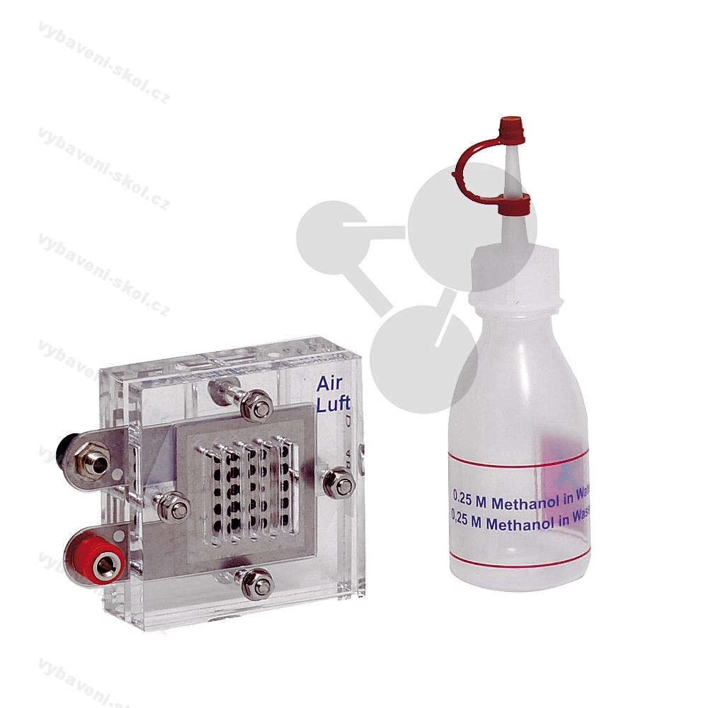 Metanolový palivový článek můžete použít jednotlivě nebo jako modul pro rozšíření sady pro žákovská cvičení (kód CON1008164). Dodáváno bez metanolového roztoku.
